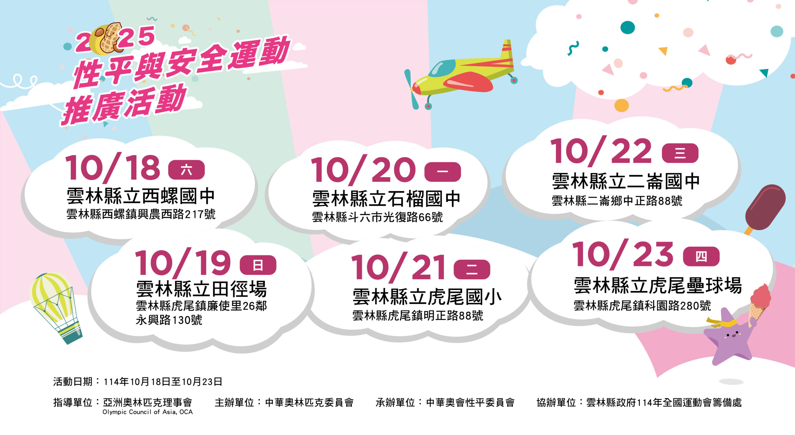 【轉知】中華奧會攜手雲林縣政府推動安全運動與性平教育『答題拿霜淇淋』巡迴宣導活動2025 年 10 月 20 日 最新消息附件下載DM下載 上一篇中華民國雪車協會 114 年度辦理「2026年第25屆米蘭-科爾蒂納冬季奧運會」消耗性器材採購案(未達公告金額) 【第1次公告】 下一篇【轉知】中華民國體育運動總會訂於114年11月22至23日,假臺北市立大學天母校區辦理「114年教練暨裁判增能進修研習會(第25梯次)臺北場」